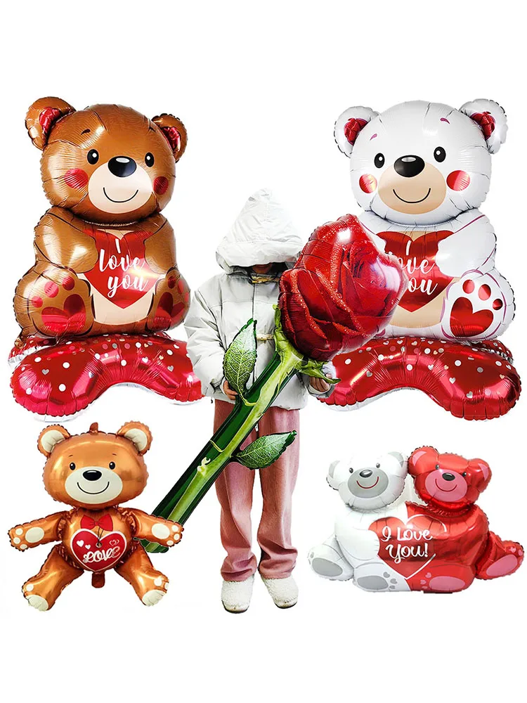 Giant Rose Valentine’s Day Balloon Standing Teddy Bear Balloon Birthday Party Holidays Valentines Night Romantic Decorations