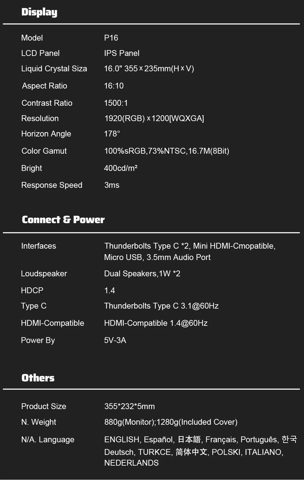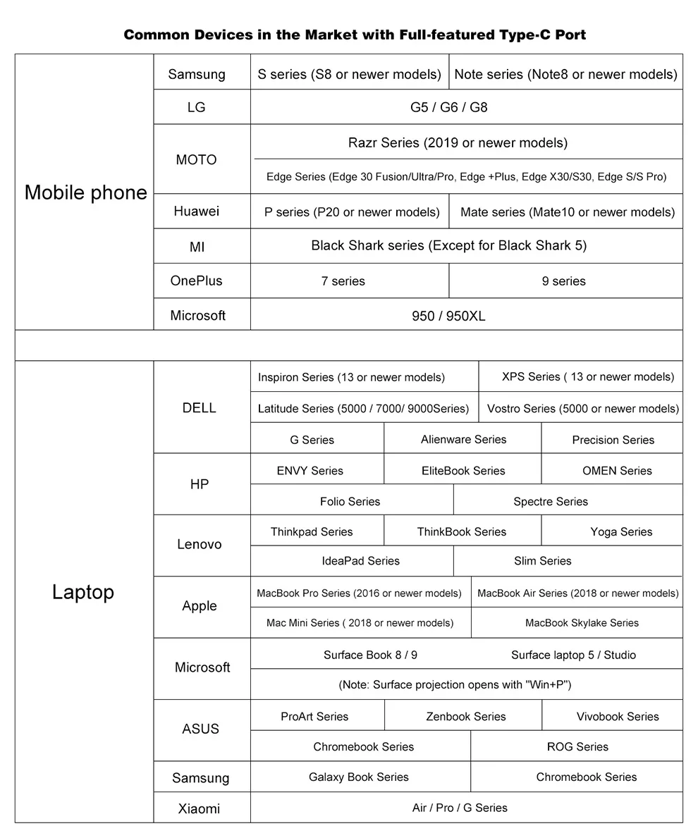 Compatiable for the Thunderbolts Phone and Laptop via TYPE C connection