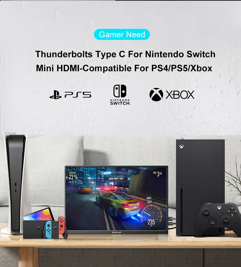 Q: 4. How to connect ZEUSLAP portable monitor with my PS4/PS5/Xbox One/TV box/Mini PC?