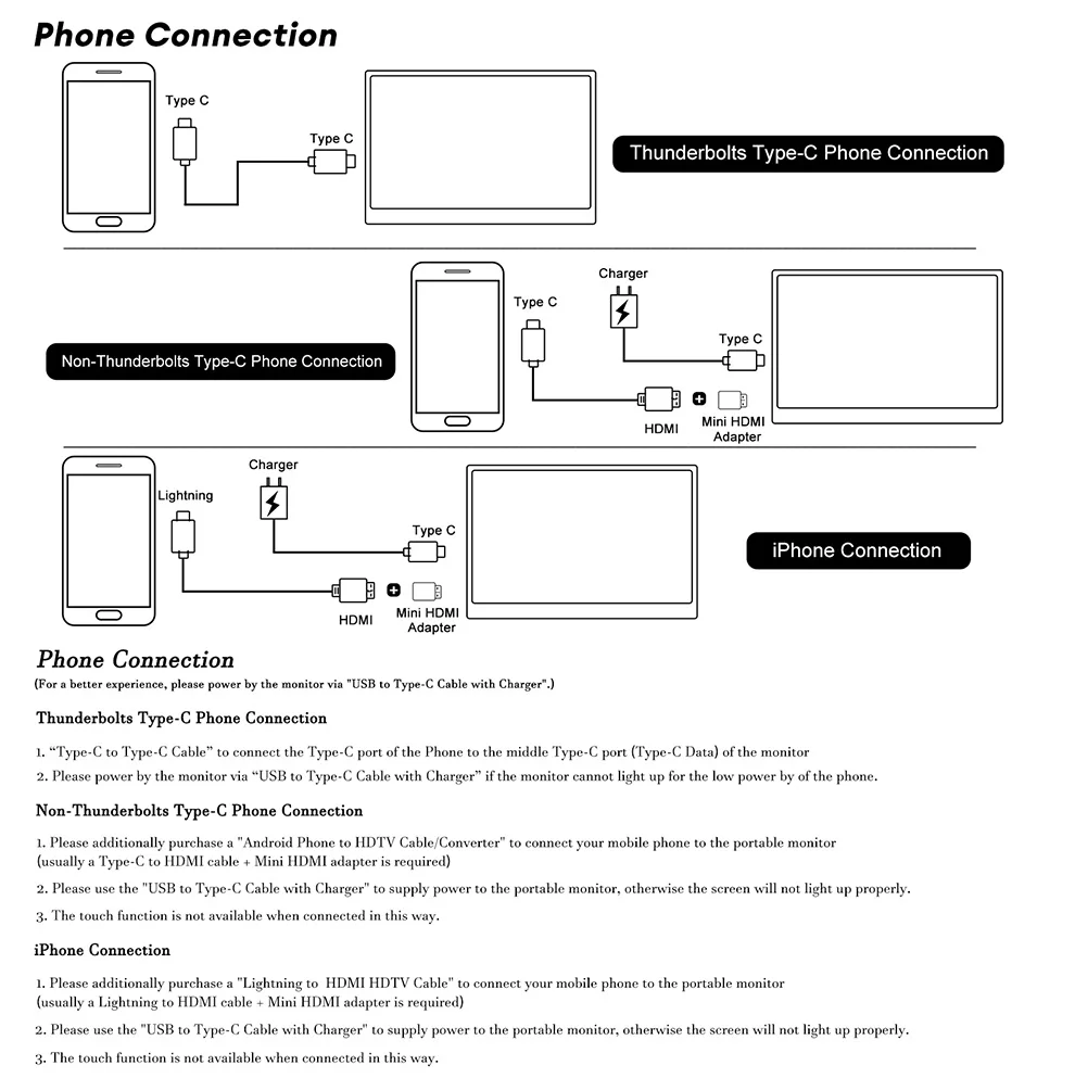 The touching function can not work with non-thunderbolts type c phone, it can only mirror function.